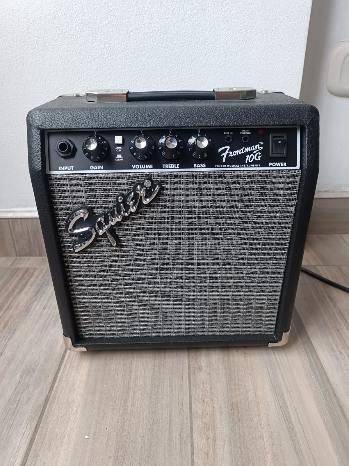 GUITARRA ELECTRICA EN COMBO BULLET SQUIER: INCLUYE ESTUCHE, CORREA, AMPLIFICADOR SQUIER FRONTMAN 10G CON CABLES, BASE PARA GUITARRA.